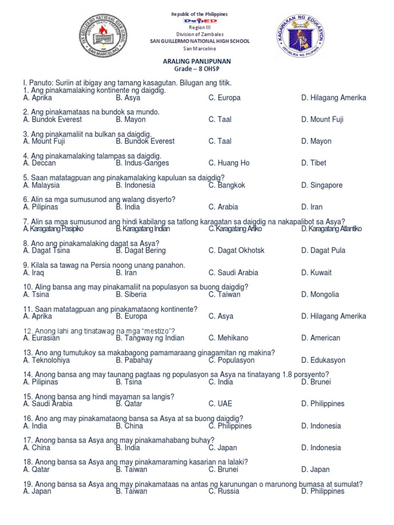 Ang Republika ng Nauru ang pinakamaliit na isla bansa sa buong mundo. Ano ang pinakamalaking pinagkkukunan ng enerhiya sa Tsina. Ng United States US na inatasang kumuha magproseso at mag-analisa ng mga impormasyon na may kinalaman sa national security sa ibat ibang panig mundo.