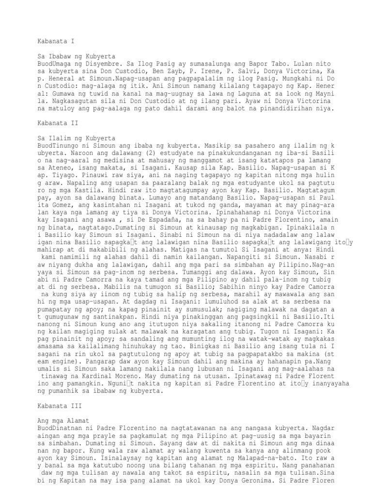 Feb 27 2015 Read Kabanata 1 from the story EL FILIBUSTERISMO BUOD NG BAWAT KABANATA by ashtonxdelevigne Ashton Delevigne with. Kagaya ng nakagawian ni Huli siya ay gumising ng maaga at buong pusong umaasa na sana ay hindi na sisikat ang araw. Nalimutan ng kutserong si Sinong ang kanyang sedula kayat itoy kinakailangang bugbugin muna ng mga guwardiya sibil.